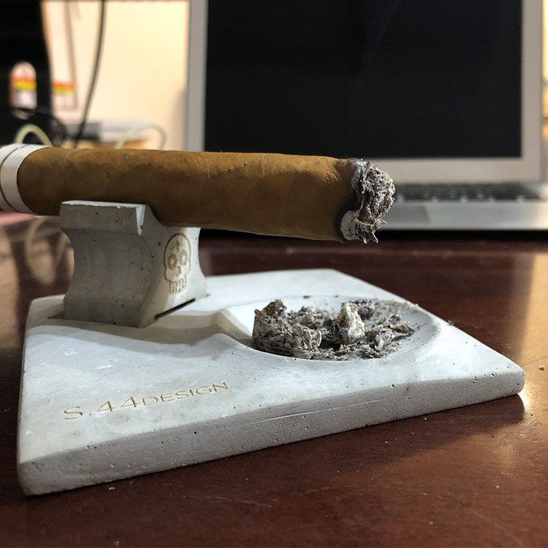 Ensemble cendrier + repose cigare en béton avec personnalisation des 2 objets